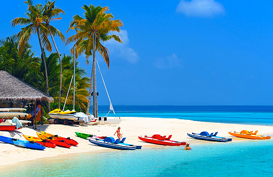 Maldives is a tropical paradise famous for its crystal-clear turquoise waters, white sandy beaches, and luxurious overwater villas